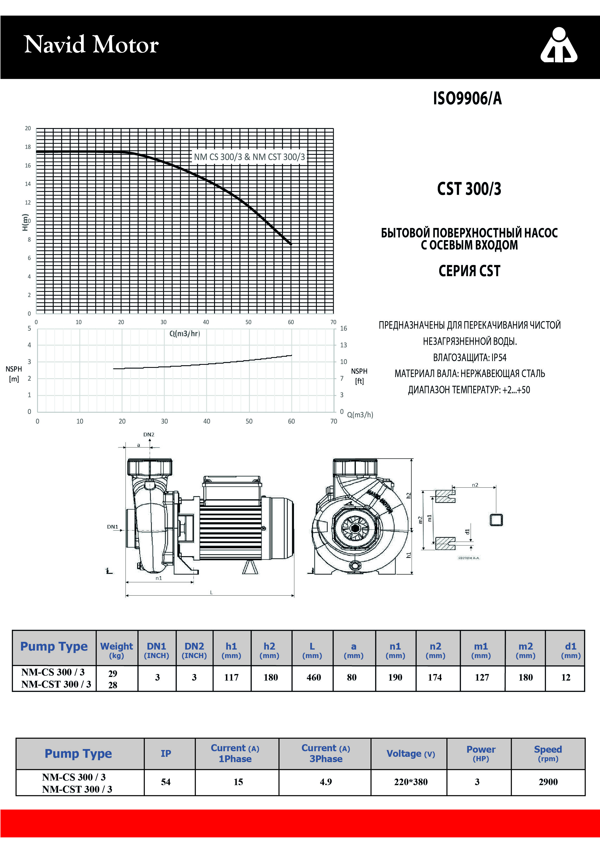 Насос NAVIDMOTOR CST 300/3 дв. 1.5 квт 380В ( 2 HP)