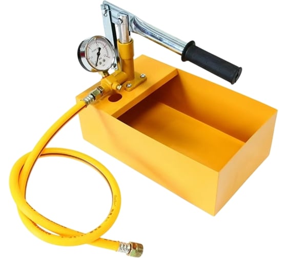 Ручной опрессовочный насос для создания испытательного давления и контроля герметичности в замкнутых контурах (водоснабжение, отопление). Компактная конструкция обеспечивает применение в стеснённых условиях. Конструктивные элементы: армированный стальной проволокой шланг 1.8 м (рабочее давление 200 бар), латунные корпус насоса и клапан сброса, стальной корпус с порошковым покрытием, съёмная насосная головка для обслуживания, тройное уплотнение, грубый фильтр, прорезиненная противоскользящая рукоятка.