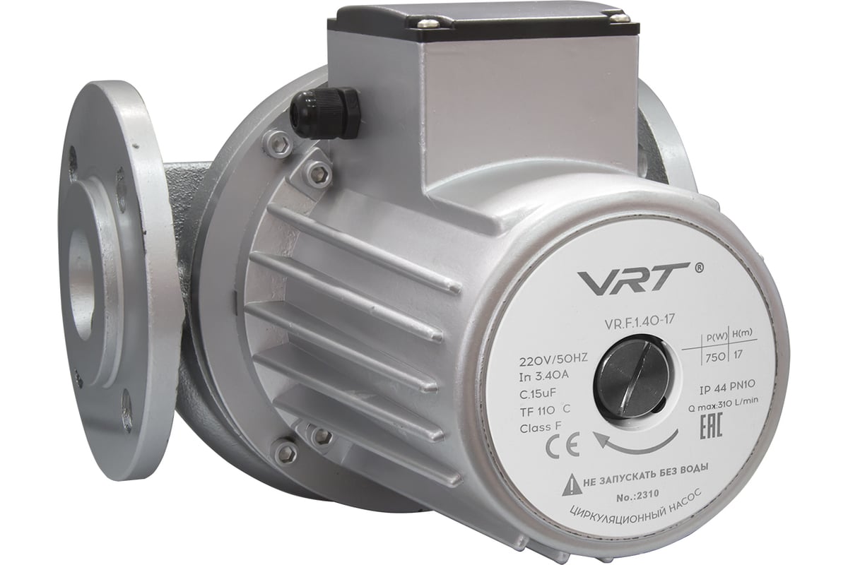 Насос циркуляционный VRT VR.F.1.40-17 с фланцевым соединением, 220 В, 0.75 кВт, 17 м, 18.6 куб/ч, кабель, с фланцами 552703