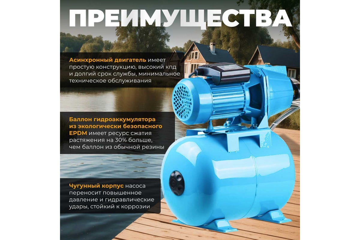 Надежность. Корпус из чугуна и гидроаккумулятор из окрашенной стали отличаются прочностью и устойчивостью к коррозии.