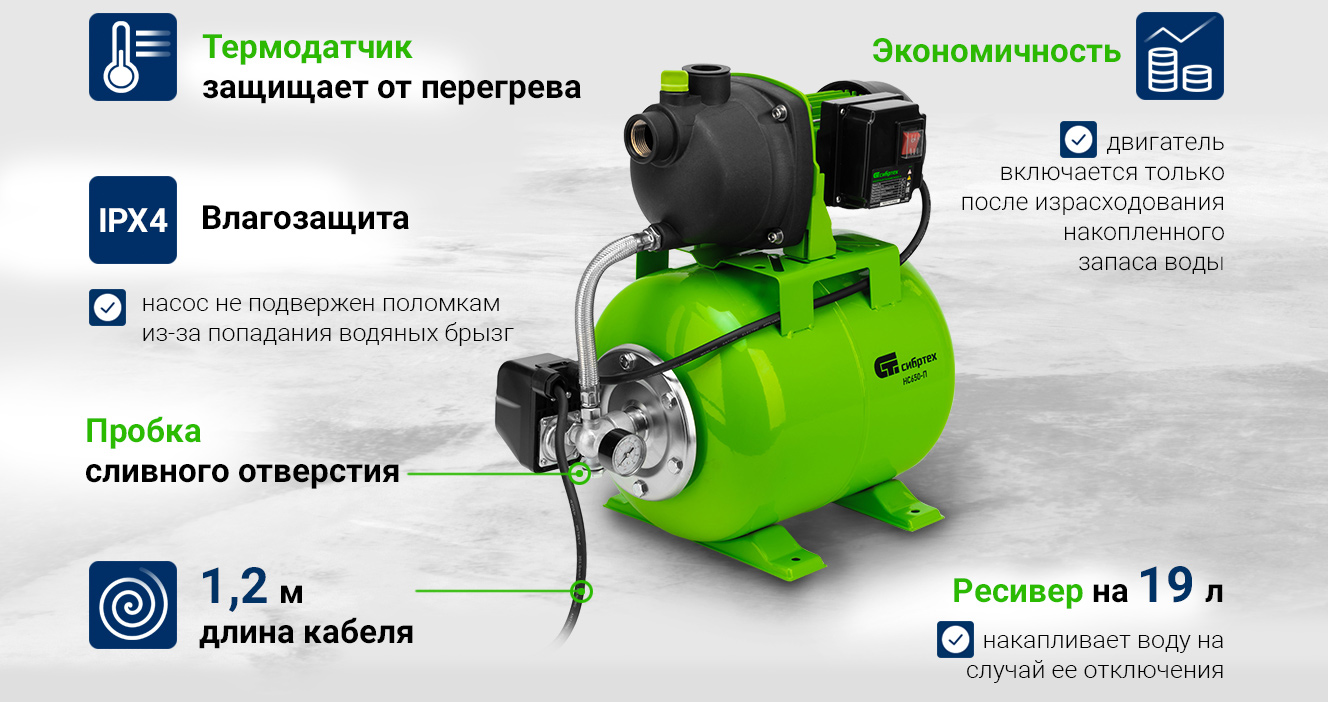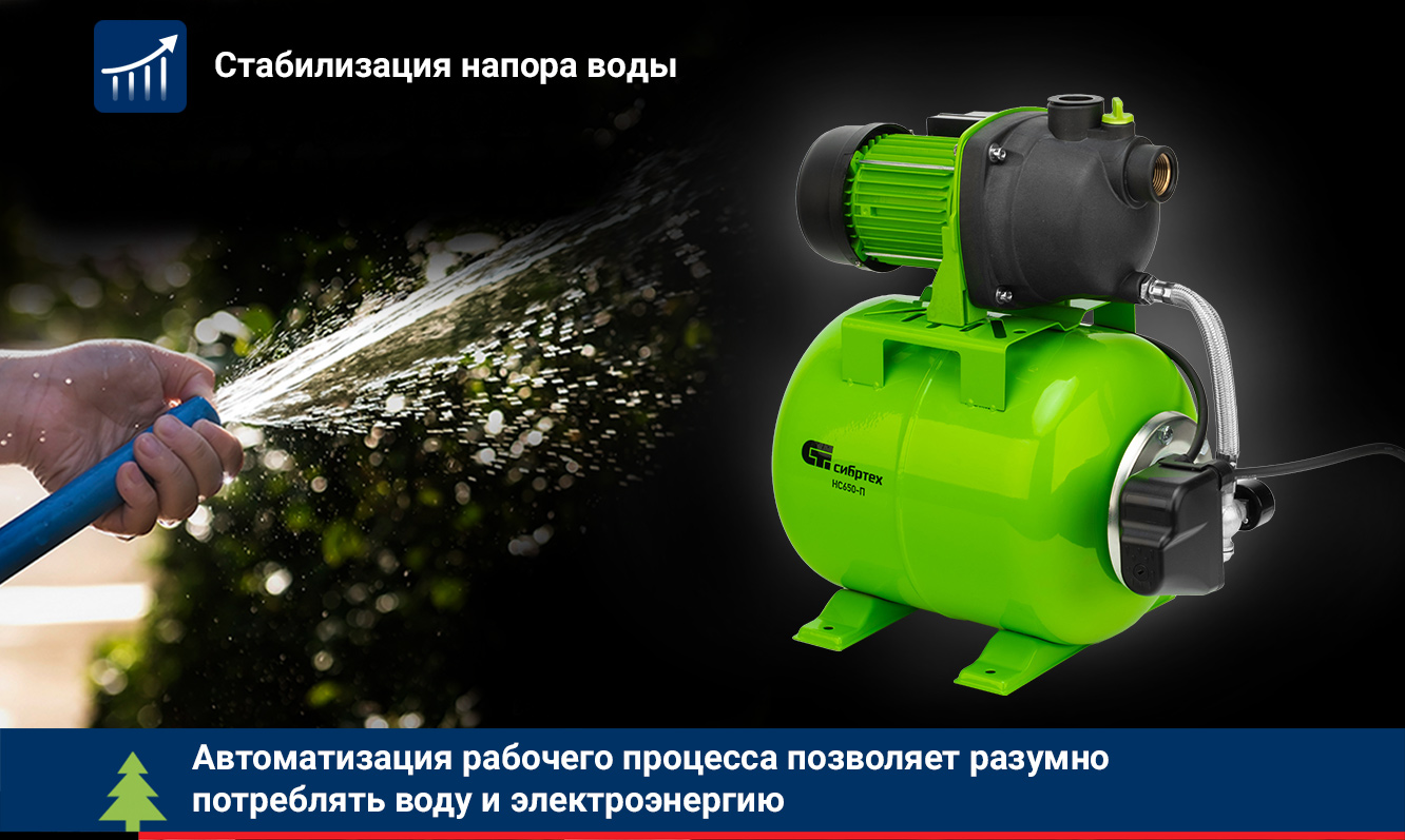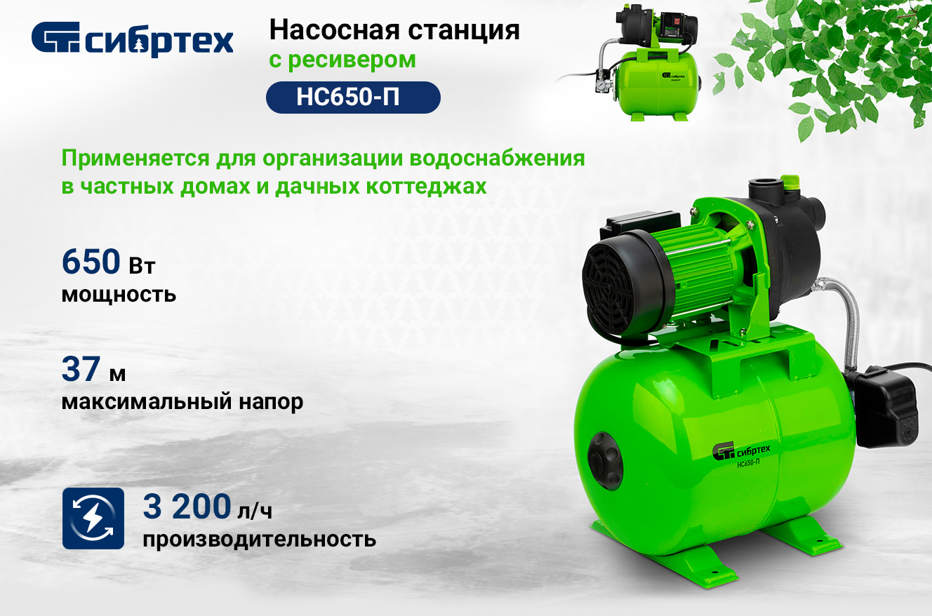 Насосная станция СИБРТЕХ НС650-П 97247 применяется для водоснабжения, обеспечения автоматической подачи воды и поддержания давления в водопроводе.