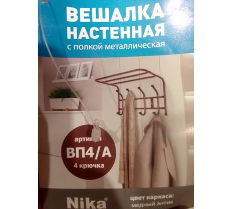 Настенная вешалка с полкой Nika 4 крючка, медный антик ВП4 впишется в любой интерьер. Предназначена для верхней одежды.