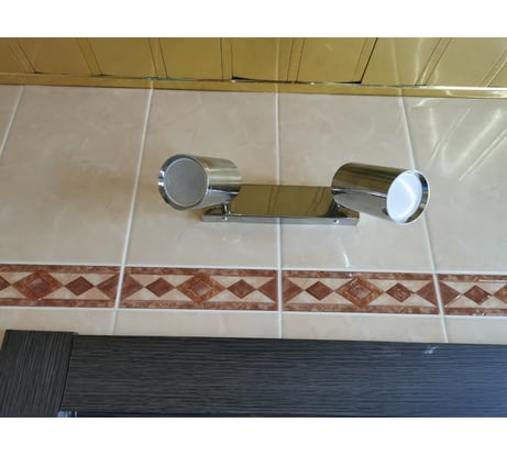 Для ванной комнаты самое то, спот с двумя плафонами светит ярко, поворотный механизм позволяет направить плафоны в нужные стороны для более чёткого освещения.