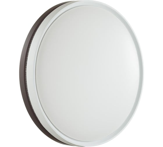 Форма плафона: круглая, декорирована ободом из пластика темно-коричневого цвета у основания светильники и белого цвета у внешнего края. Обод украшен прозрачной декоративной вставкой под хрусталь.