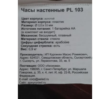 Ни на картонной упаковке, ни на самих часах нет информации, что сделано в Китае. Указан ИП с адресом в Сысерти, но индекс не совпадает. Циферблат сдвинут, минутная стрелка погнута и касается корпуса. Пришлось разбирать, выправлять стрелку и выставлять ровно циферблат.