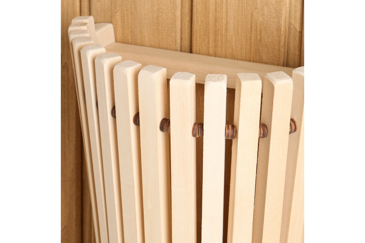 Изготовлен из дерева, благодаря чему отличается экологичностью, прочностью, простотой в уходе, низкой теплопроводностью и отлично сочетается с банным интерьером.
