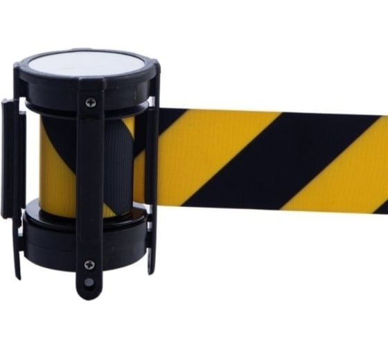 Конструкция с двухцветной лентой для маркировки потенциально опасных участков. Желто-черная полоса является общепринятым стандартом для предупреждения о физических препятствиях или зонах с особыми требованиями безопасности. Используется на складах, в производственных цехах, на парковках и ремонтных площадках для ограждения мест проведения работ, опасного оборудования или границ погрузочных платформ, обеспечивая повышенный уровень видимости и предотвращения несанкционированного доступа.