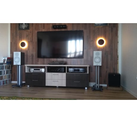 Здорово вписался в интерьер, 2 штуки у телевизора. Отличная подсветка, не мешает смотреть ТВ и слушать музыку