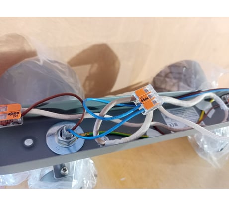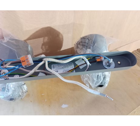 1. Не предусмотрен вариант использования наружной проводки. А у меня именно такой. Надо будет в основании как-то делать отверстие под провод. 2. Провода внутри основания делали, видимо, под IP-64. В общем, все получило жестко и громоздко. Возможно, придется переделывать. 3. М.б. это и не недостатки, но... На этой же серии светильник с одним плафоном имеет встроенный выключатель. Тут его нет. Еще у одинарного светильника клеммная колодка более основательная, чем у этого Странно.