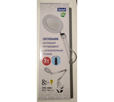 Настольная светодиодная лампа Uniel White/LED/300Lm/2700-5500K/Dimmer/X5 TLD-568 UL-00007386 имеет в конструкции линзу с пятикратным увеличением.