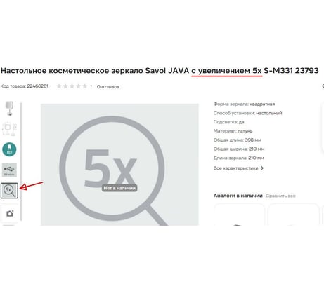 Зеркало хорошее, основание массивное, стоит крепко. По внешнему виду как на фото в описании. Такая оценка только из-за обмана покупателей! Специально выбирал именно с 5-ти кратным увеличением. По факту оказалось такое же 3-х кратное как и у большинства в каталоге. На фото скриншот из описания на сайте и заводских, этикетки на коробке и защитной плёнки на поверхности зеркала. Чётко и ясно - 3-х кратное увеличение. Куда смотрят составители описания, непонятно.