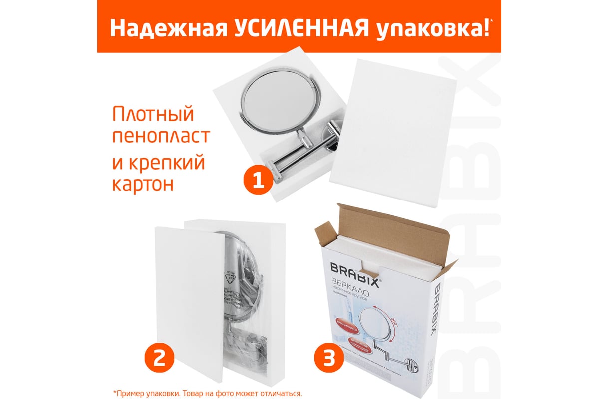Сопутствующие товары для зеркала BRABIX 19x16 см, двустороннее, с увеличением, прозрачная рамка