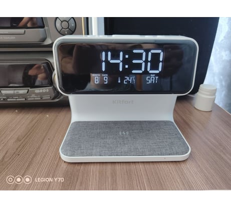 Настольные часы KT-3351 выполняют сразу несколько функций: показывают время, дату, день недели и температуру, могут служить будильником и светильником. Благодаря беспроводной зарядке, встроенной в нижнюю часть корпуса, вы можете с легкостью заряжать телефон, часы или другие устройства, если они поддерживают функцию беспроводной зарядки. Яркость дисплея и подсветки настраивается, что очень удобно. Также подсветку и дисплей можно отключить. Благодаря стильному дизайну настольные часы легко впишутся в ваш интерьер.