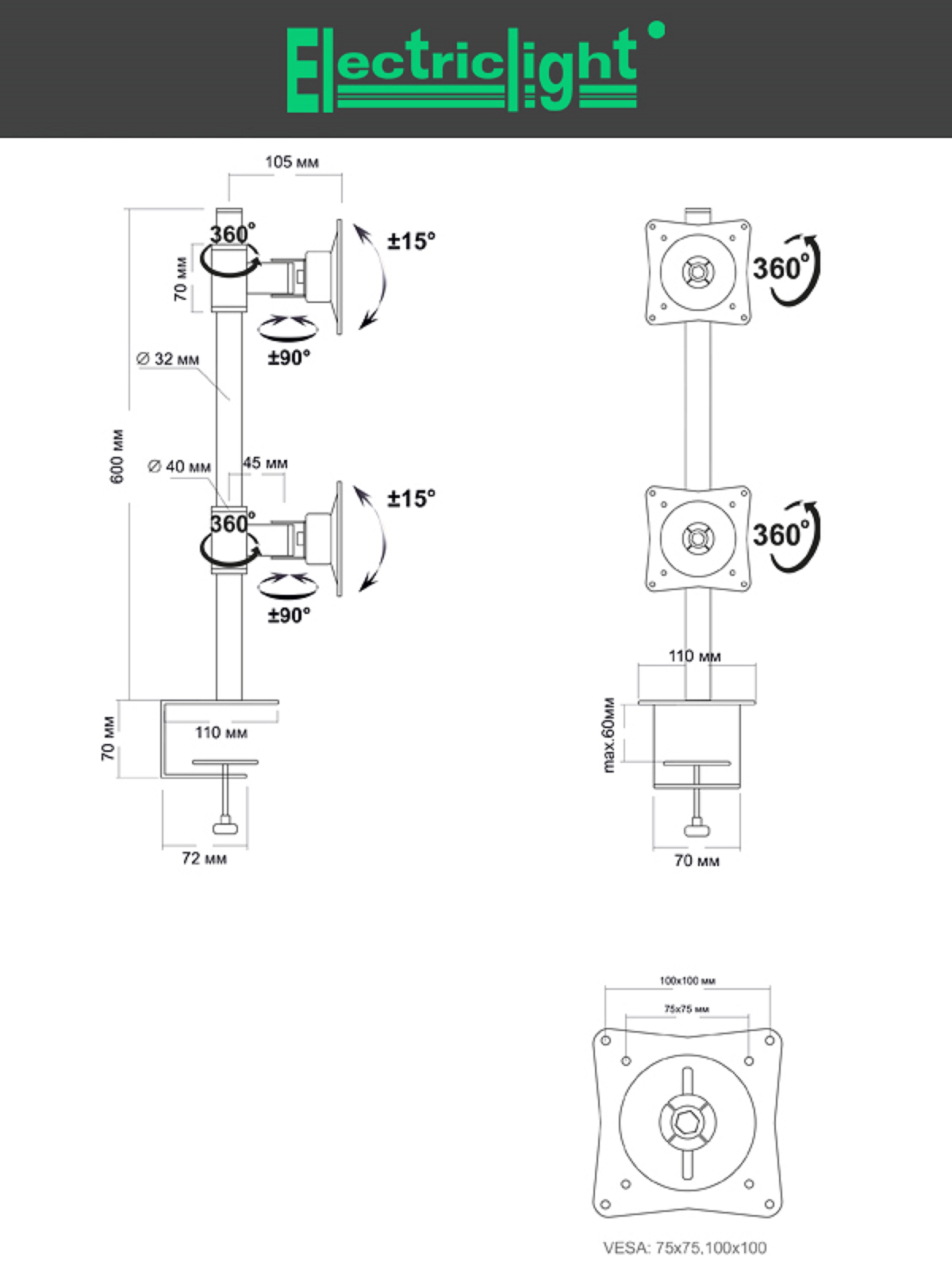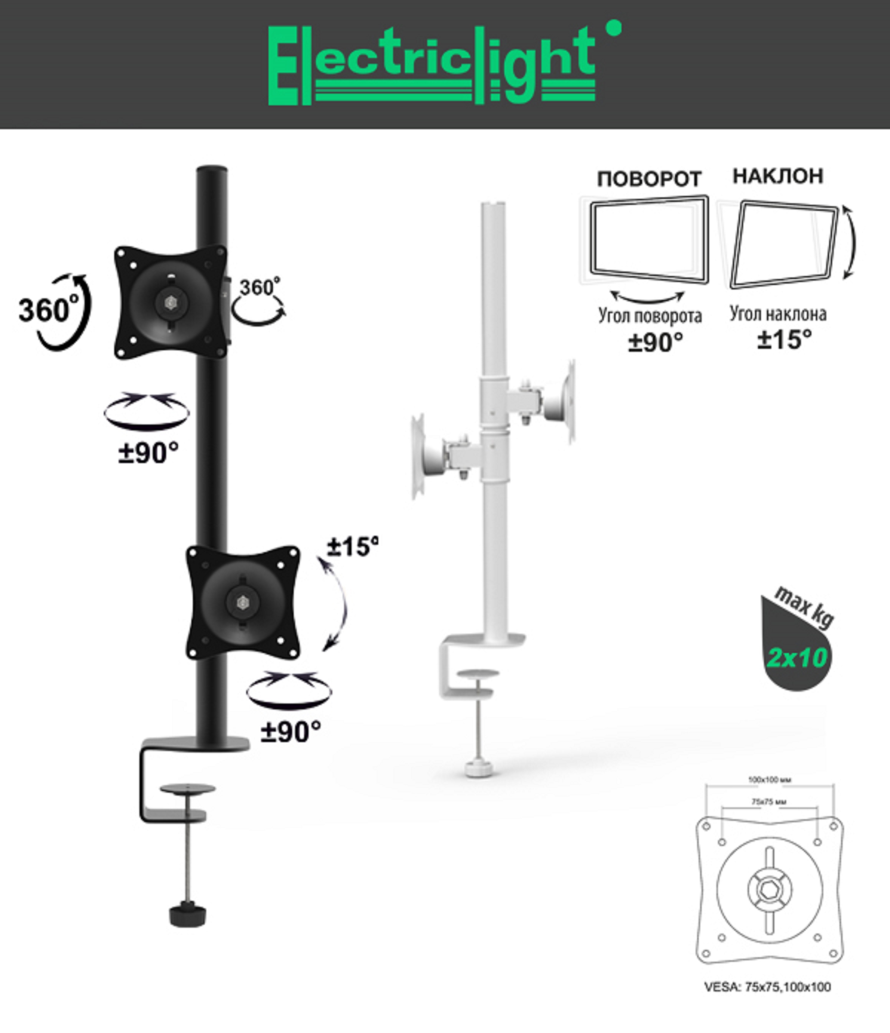Настольный кронштейн для 2-х мониторов Electricligh Electriclight КБ-01-133 черный