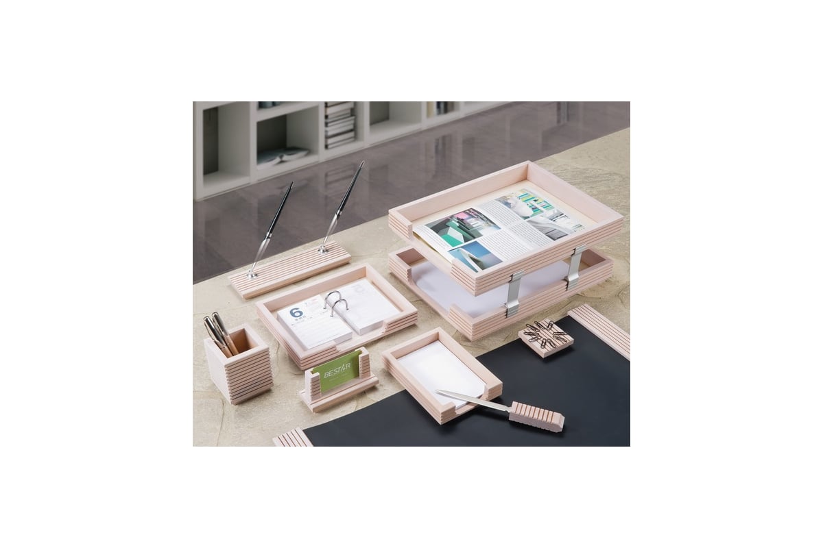 Настольный набор BESTAR Nefertum из массива дерева, 9 предметов, цвет беленый дуб 236397 предназначен для использования дома или в офисе.