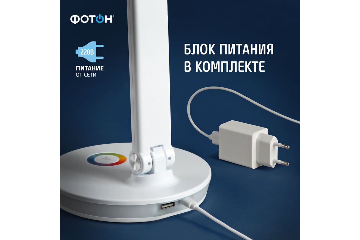 Настольный светильник светодиодный сетевой ФОТОН TL-9D4RGB-W (9 W) c RGB-ночником белый 25697