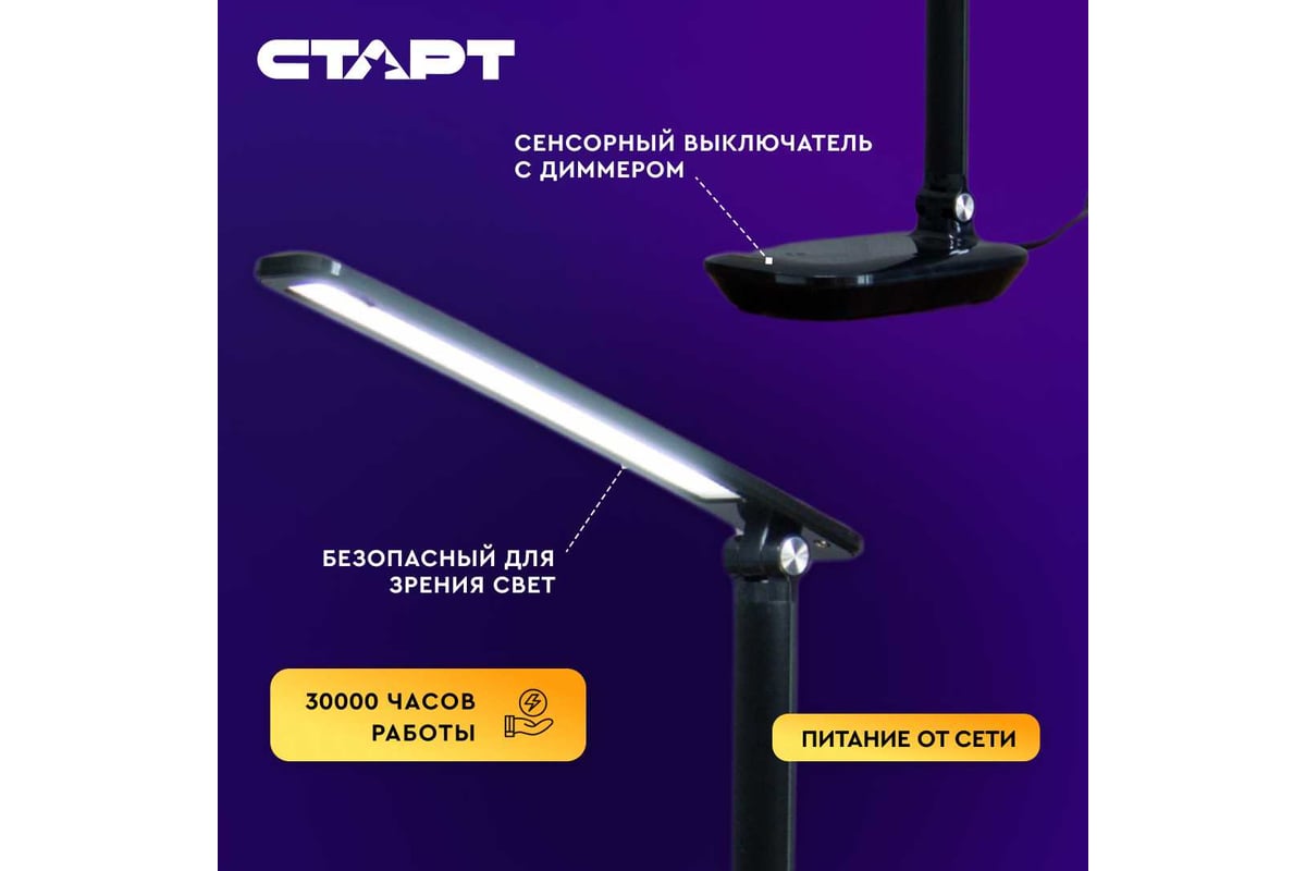 Настольный светодиодный светильник СТАРТ ст111 черный с сенсорным переключателем 14673