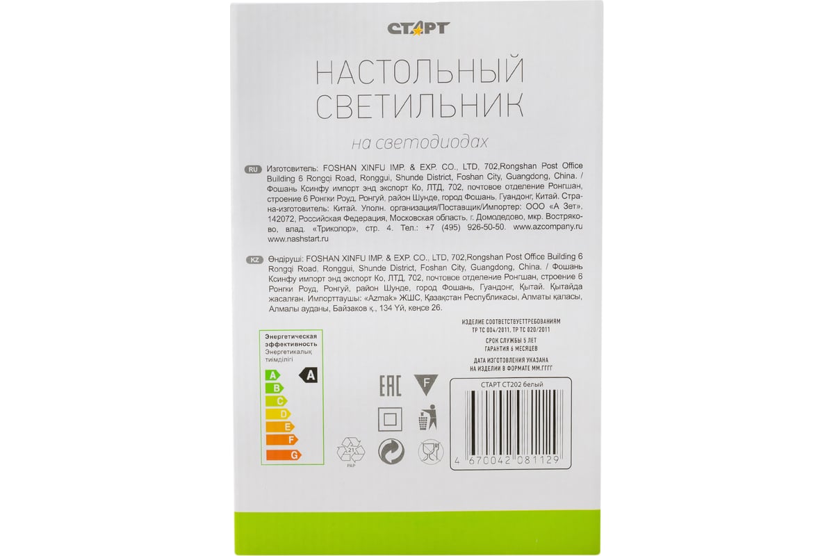 Расходные материалы для настольного светодиодного светильника СТАРТ в белом корпусе 14678
