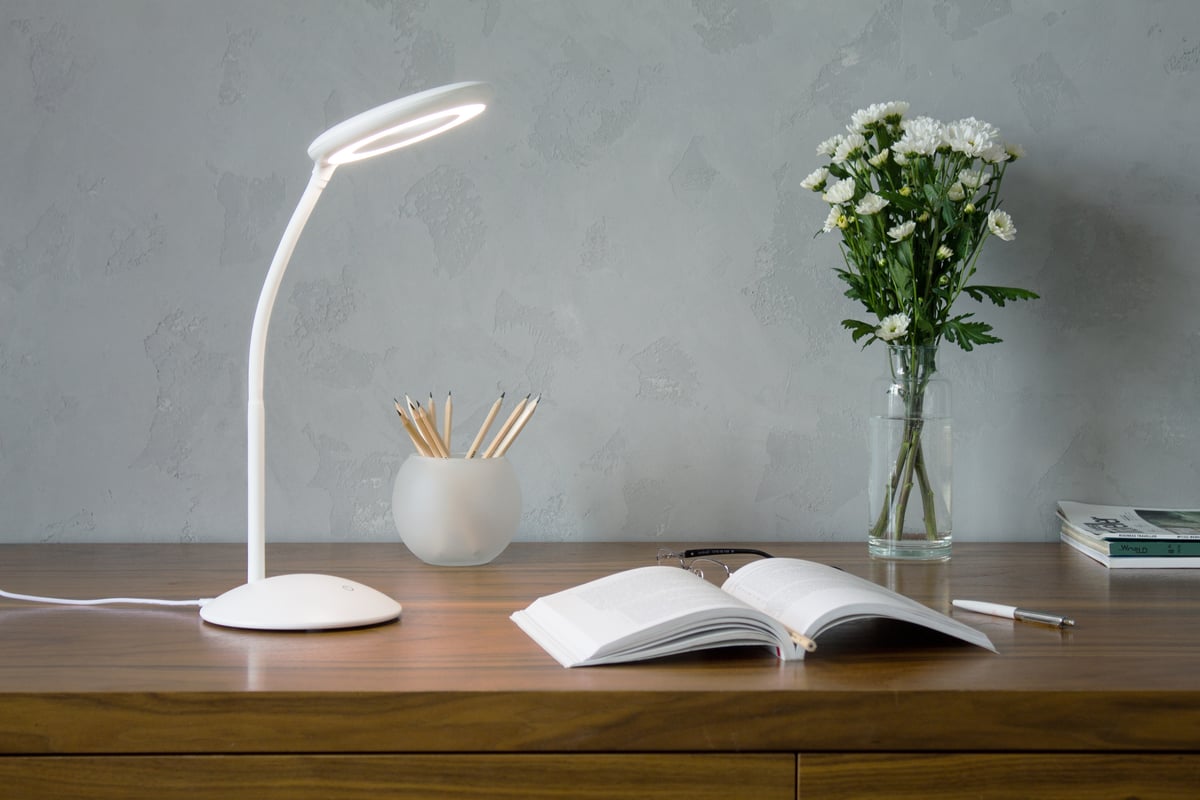 Светильник СТАРТ СТ202 белый имеет 3 уровня яркости, которые переключаются с помощью диммера. Сенсорный переключатель находится на подставке светильника. Гибкая «ножка» позволяет поворачивать плафон в любом направлении, выбирая нужный угол света. Рекомендуется устанавливать светильник слева от рабочей зоны.