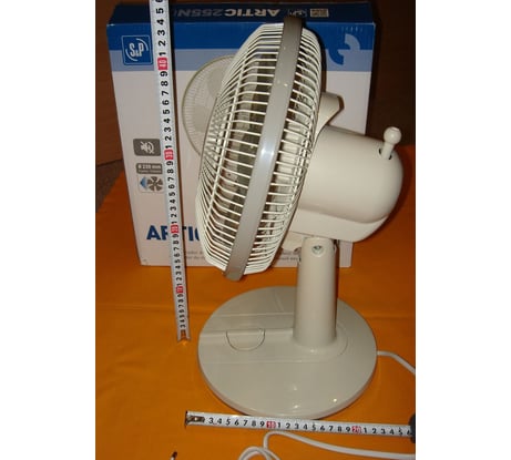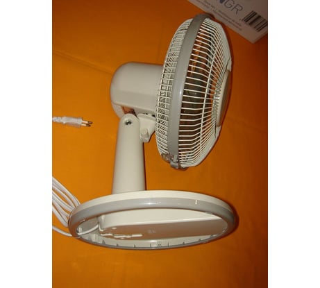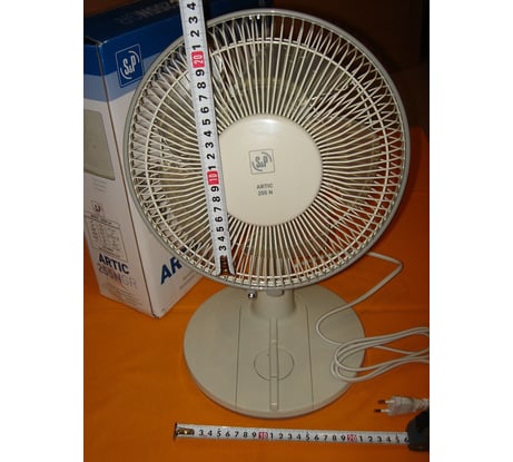 Всего 2 скорости, переключение между ними через поворотный диск (не кнопки) организовано плашмя на основании. На оголовье пластиковый штырь, фиксирующий горизонтально-поворотное положение тарелки. Положение по вертикали фиксируется большим крестовым ключом, иначе тарелка склонится далеко вниз, а крепить вертикаль ключом потребуется часто. Ни на коробке, ни на самом вентиляторе не указано, что он изготовлен именно в Испании. Диаметр пропеллера (крыльчатки) всего 21 см. Угловой диапазон поворотов тарелки (горизонталь-вертикаль) небольшой. Цена с учетом шумности и габаритов реально завышена.