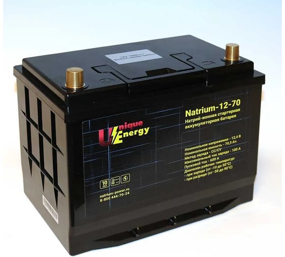 Натрий-ионная аккумуляторная батарея Unique Energy Sodium 12V 70Ah R+ (обратная полярность) UE Sodium-12V-70Ah-R+
