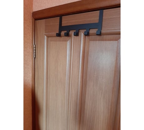 Вешалка подошла идеально на дверь 3,9 см толщиной. Не ерзает, надевается без усилия. Очень стильно благородно смотрится.