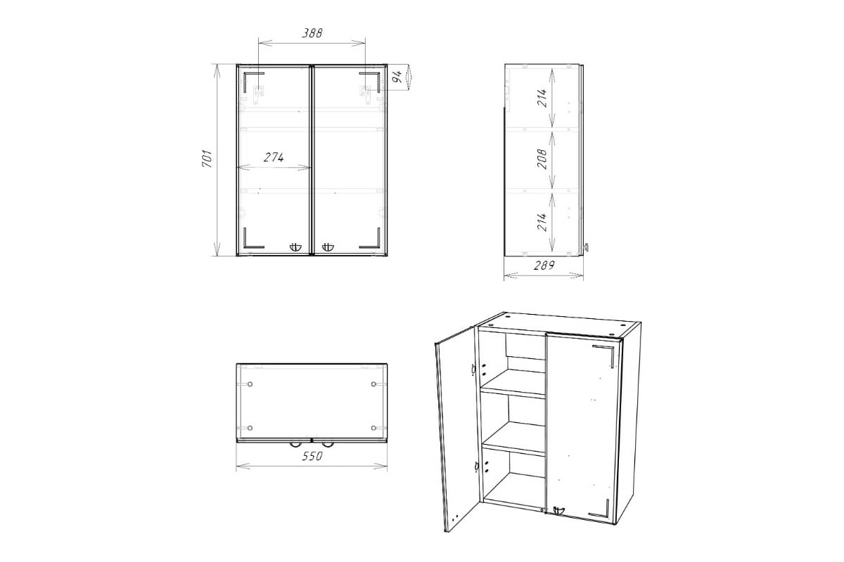 Навесной шкаф поставляется в собранном виде. Для удобства в использовании на дверях установлены петли с доводчиком. Внутреннее пространство разделено двумя полками для удобства. 1 год гарантия производителя.