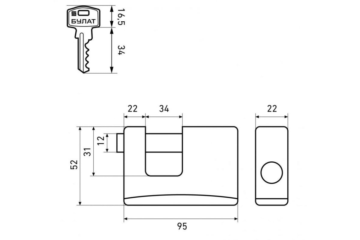 Технические характеристики навесного замка БУЛАТ 12 мм