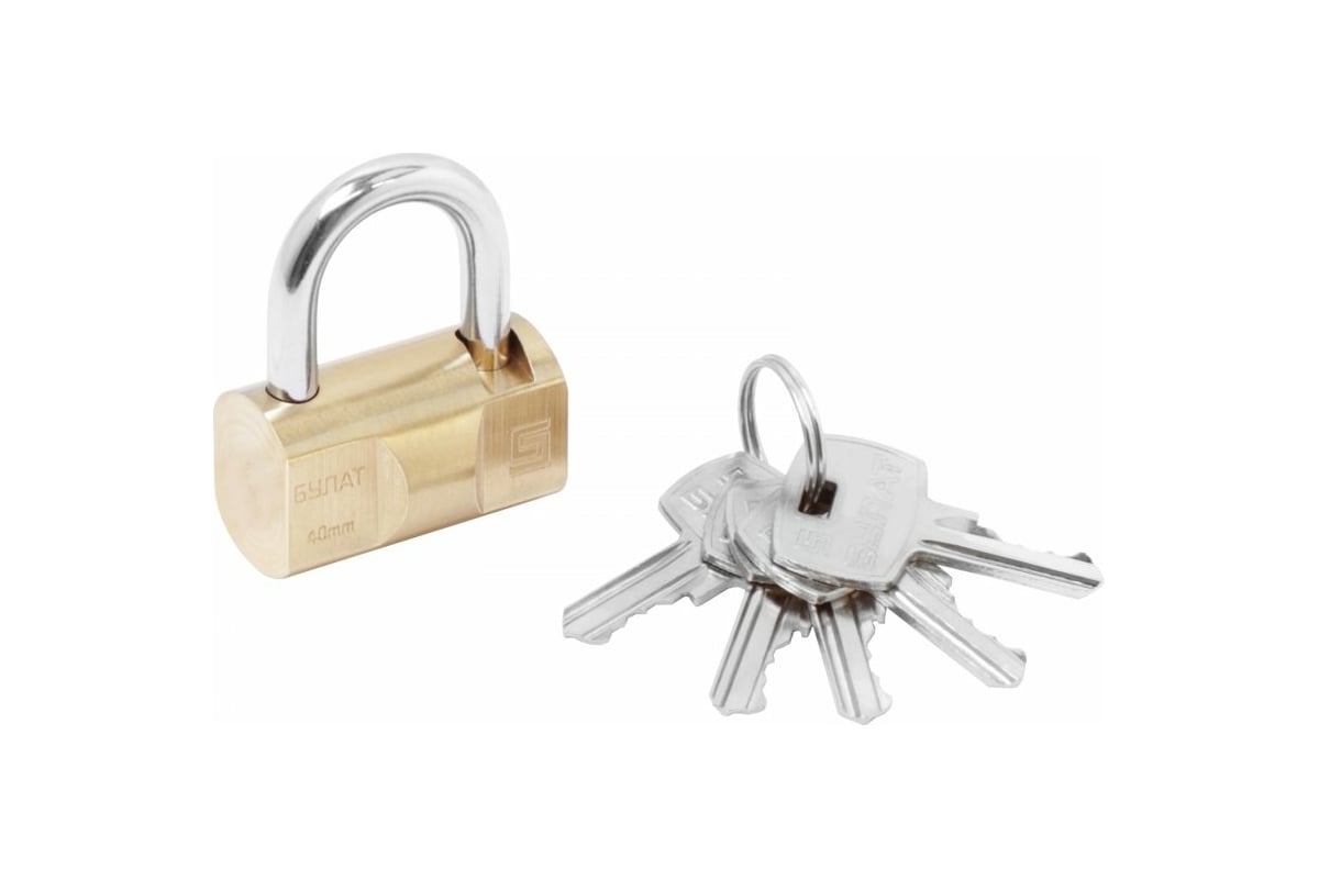 Навесной замок БУЛАТ ВС 1-О40 латунный, 5 ключей, d=6 мм 13643