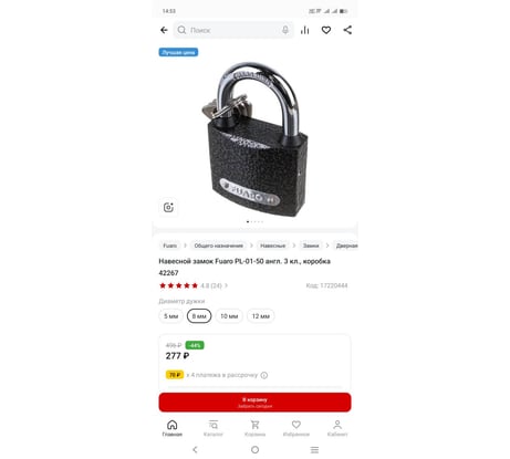 Товар для замка 1 класса достойный, но в карточке товара под кодом 17220444, душка диаметр 8 мм, указан замок 3 класса и чек на точке ВИ выдают, что замок 3 класса. Кому важен класс обращайте внимание при получении товара.