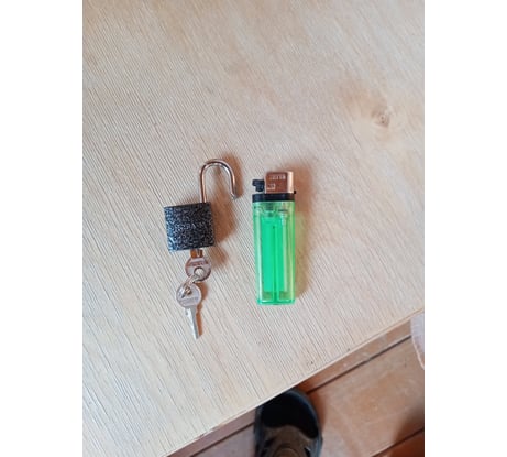 Очень маленький удобный замочек, с виду симпатичный. Покупал 2 шт. на шкафчики в раздевалке. Фото прилагаю для сравнения размеров.