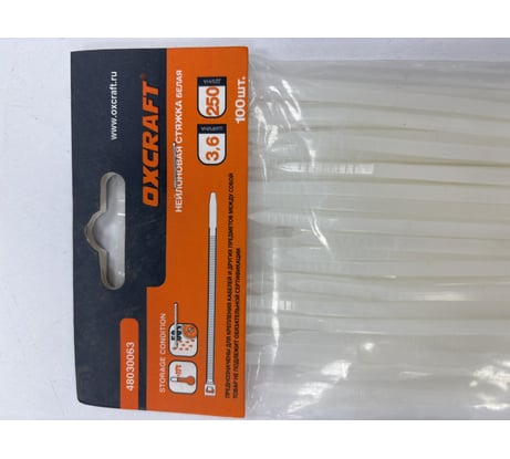 Отзывы о нейлоновой стяжке (хомут) OXCRAFT 3,6х200 мм, белая, 100 шт. УТ-00008165