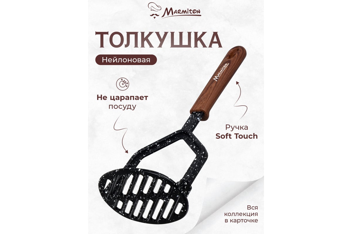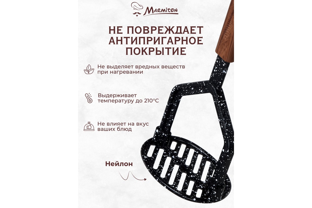 Нейлоновая толкушка MARMITON резиновая ручка, 25 см 17223