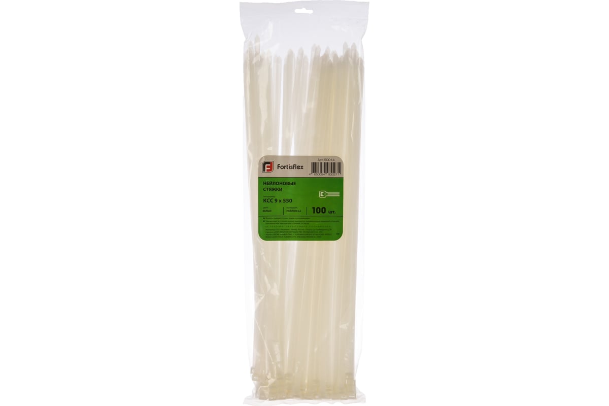 Нейлоновые стяжки FORTISFLEX КСС 9х550 белый 100 штук 50014
