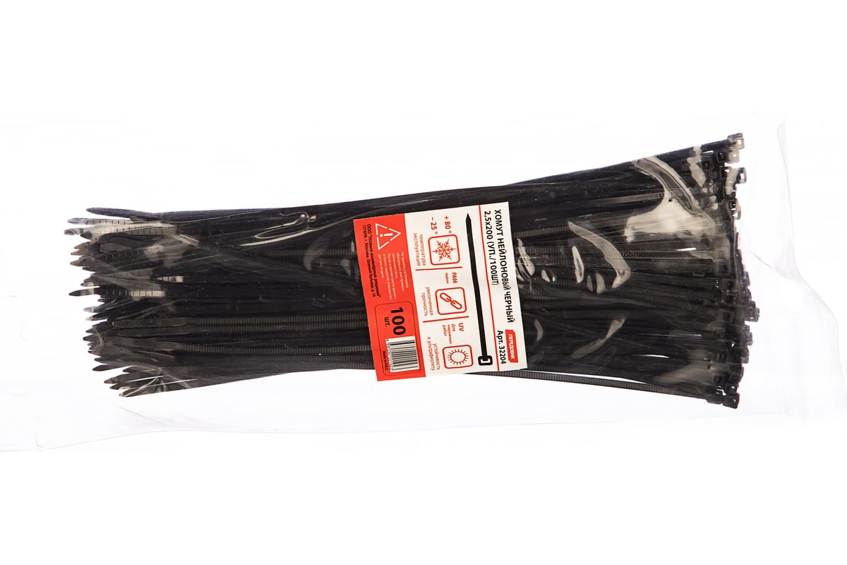 Нейлоновый черный хомут 2,5х200 100шт ПЕРЕДОВИК 32204