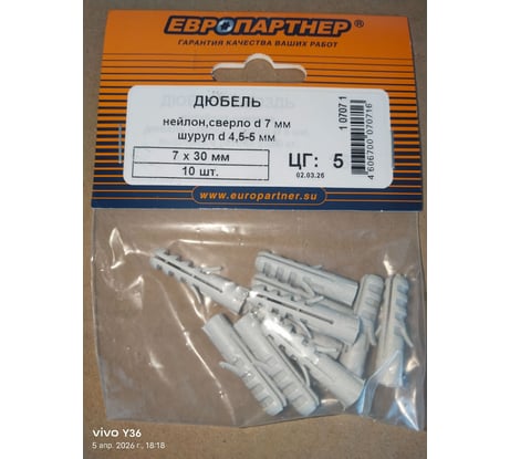 Вопросы и ответы о нейлоновом дюбеле ЕВРОПАРТНЕР 7x30 10 шт. 1 0707 1