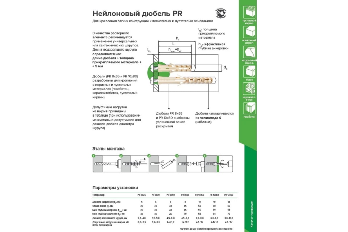 Отзывы о нейлоновом дюбеле Партнер PR 12x60 100 шт контейнер 827082