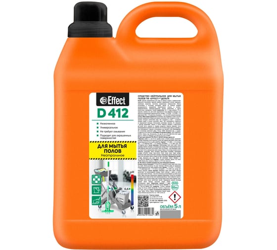 Нейтральное средство для мытья полов EFFECT ДЕЛЬТА 412 5000 мл 26006 предназначено для чистки и ухода за различными поверхностями.