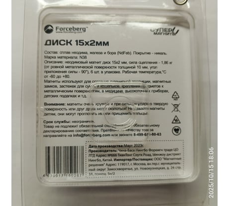 - Срок размагничивания неодимового магнита - диска 15х2мм Forceberg 9-1212320-006: прибл 1% в 10 лет