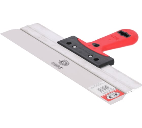 Шпатель с алюминиевым прочным профилем, узкое полотно изготовлено из нержавеющей высокопрочной стали. Комплектуется с эргономичной, двухкомпонентной рукояткой, что позволяет равномерно наносить материал на обрабатываемую поверхность и исключает проскальзывание изделия в руке. Оснащенной отверстием для подвеса. Толщина металла 0,5мм по всей поверхности, что придаёт стабильное распределение материала по всему полотну.