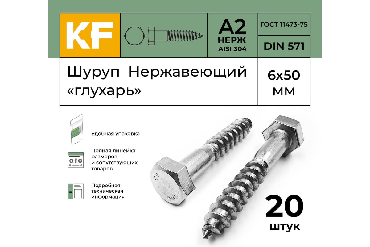 Нержавеющий шуруп KREPFIELD 6x50 мм глухарь din 571 а2 20 шт. в упак. 571А2ШУРУП6Х50-20
