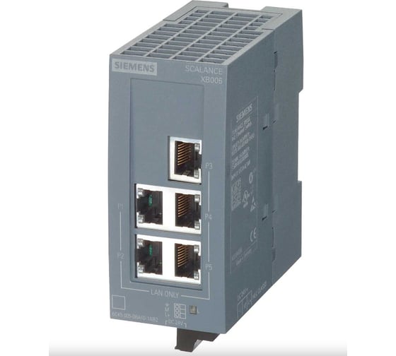 SCALANCE XB005 НЕУПРАВЛЯЕМЫЙ КОММУТАТОР INDUSTRIAL ETHERNET ДЛЯ 10/100МБИТ/С, С 5 X 10/100МБИТ/С ПОРТАМИ ДЛЯ ВИТОЙ ПАРЫ С РАЗЪЁМАМИ RJ45, ДЛЯ СОЗДАНИЯ НЕБОЛЬШИХ СЕТЕЙ С ТОПОЛОГИЕЙ «ЗВЕЗДА» И «ЛИНИЯ», СВЕТОДИОДНАЯ ДИАГНОСТИКА, СТЕПЕНЬ ЗАЩИТЫ IP20, =24В ПИТАНИЕ, ВКЛЮЧАЯ РУКОВОДСТВА