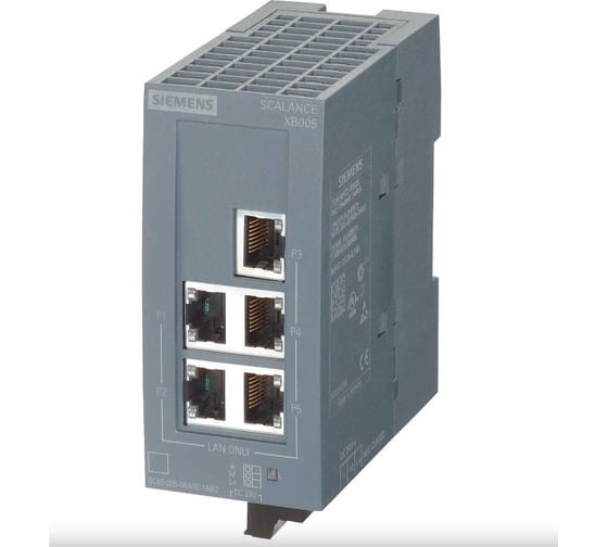 SCALANCE XB005G промышленный неуправляемый коммутатор Industrial Ethernet для 10/100/1000 Мбит/с, для создания небольших сетей с топологиями звезда или шина, светодиодная индикация, степень защиты IP20, питание 24 В постоянного тока, 5x портов 10/100/1000 Мбит /с RJ45, электронное руководство доступно для загрузки