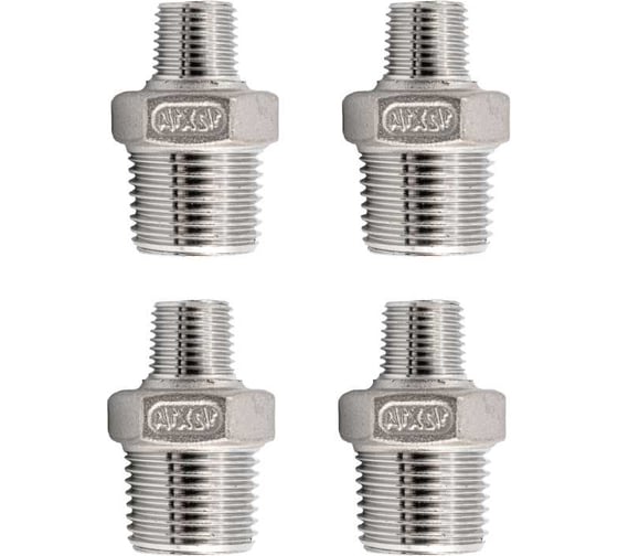 Ниппель резьбовой переходной нержавеющий NEWKEY AISI304 DN15 х DN10 (1/2 х 3/8), (CF8), PN16 набор 4 шт NAB4-NK-NMH15х10/4