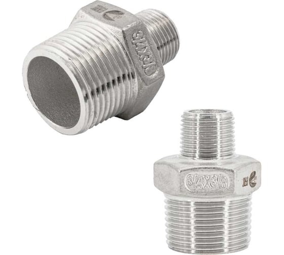 Ниппель резьбовой переходной нержавеющий, AISI304 DN20 х DN10 (3/4" х 3/8"), (CF8), PN16—компактный соединительный элемент трубопроводов в виде короткой трубки с наружной резьбой на обоих концах. Эти универсальные детали предназначены для герметичного соединения двух частей трубопроводной системы с внутренней резьбой. Правильно подобранный ниппель обеспечивает надежное и долговечное соединение трубопроводных элементов.