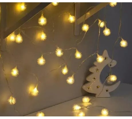 Нить Luazon DCR 5 м, с насадками Ежики Белые, IP20, Н.С. LED-30-220V, 8 режимов, теплый белый 3590693 подходит для создания эффектных интерьерных украшений и зонирования помещения: ширмы, шторы, эффект звездного неба под потолком и многое другое.