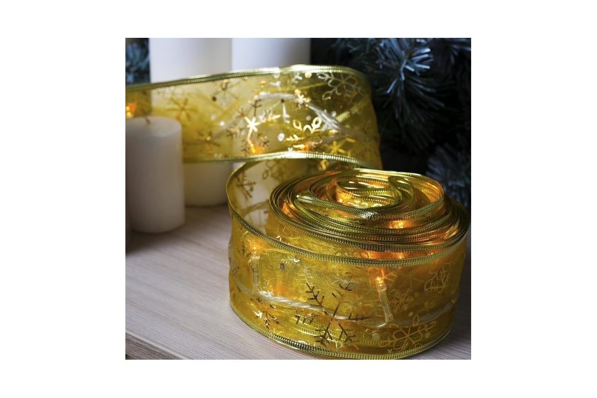 Расходные материалы для нити LUAZON DCR 9 м, лента Снежинки золотистые, IP20, Ш6 см, LED-72-220V, 8 режимов, желтый 2291978