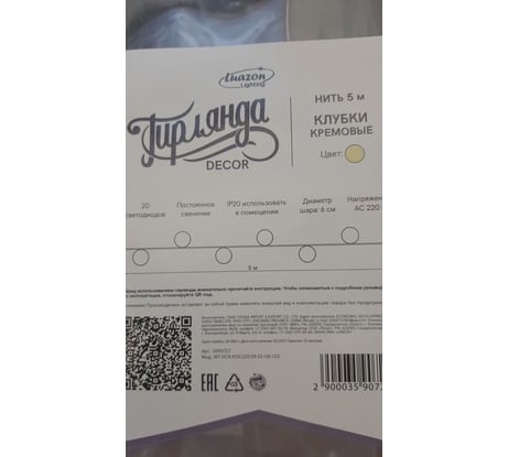 Технические характеристики LUAZON Клубки КРЕМ-БРЮЛЕ, 5 м, теплый белый 3590727