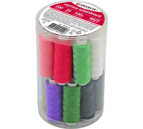 Набор ниток DEVELIA характеризуется высоким качеством исполнения. Нитки в наборе применяются для всех видов одежды, обладают отличными пошивочными свойствами и подходят как для ручного шитья, так и для всех видов швейных машин.