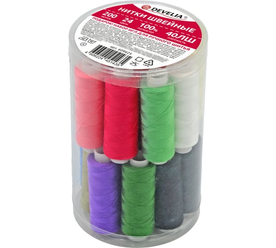 Набор ниток DEVELIA характеризуется высоким качеством исполнения. Нитки в наборе применяются для всех видов одежды, обладают отличными пошивочными свойствами и подходят как для ручного шитья, так и для всех видов швейных машин.